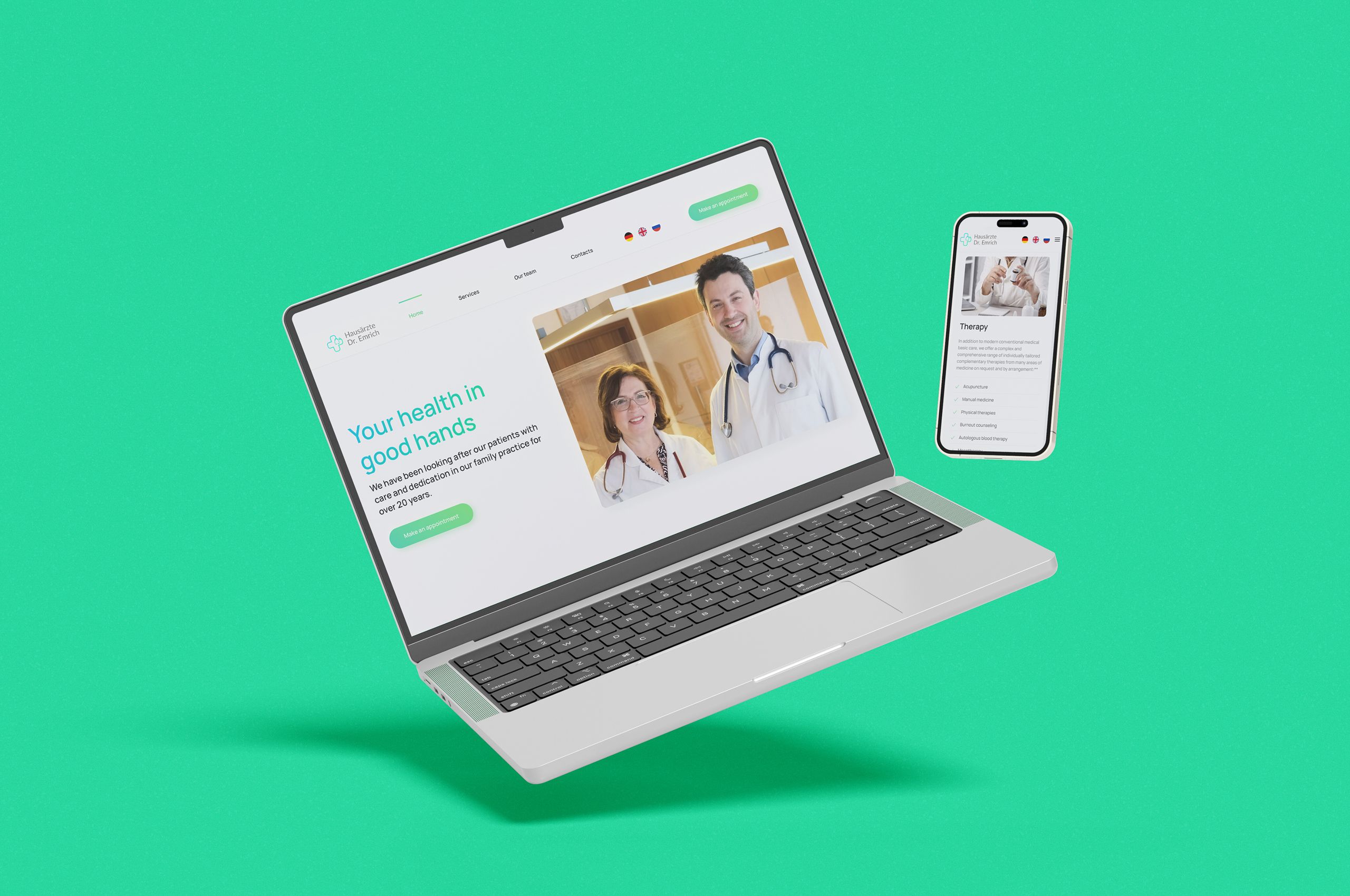 Visuell galt es, Fürsorge und Kompetenz zu zeigen, ohne den Nutzer zu überfordern. Ein sauberes Grid, frische Mint-Akzente und großzügiger Weißraum bewahren die seriöse medizinische Anmutung. Responsives Design sorgt dafür, dass Inhalte vom 4K-Display bis zum Smartphone klar lesbar bleiben.