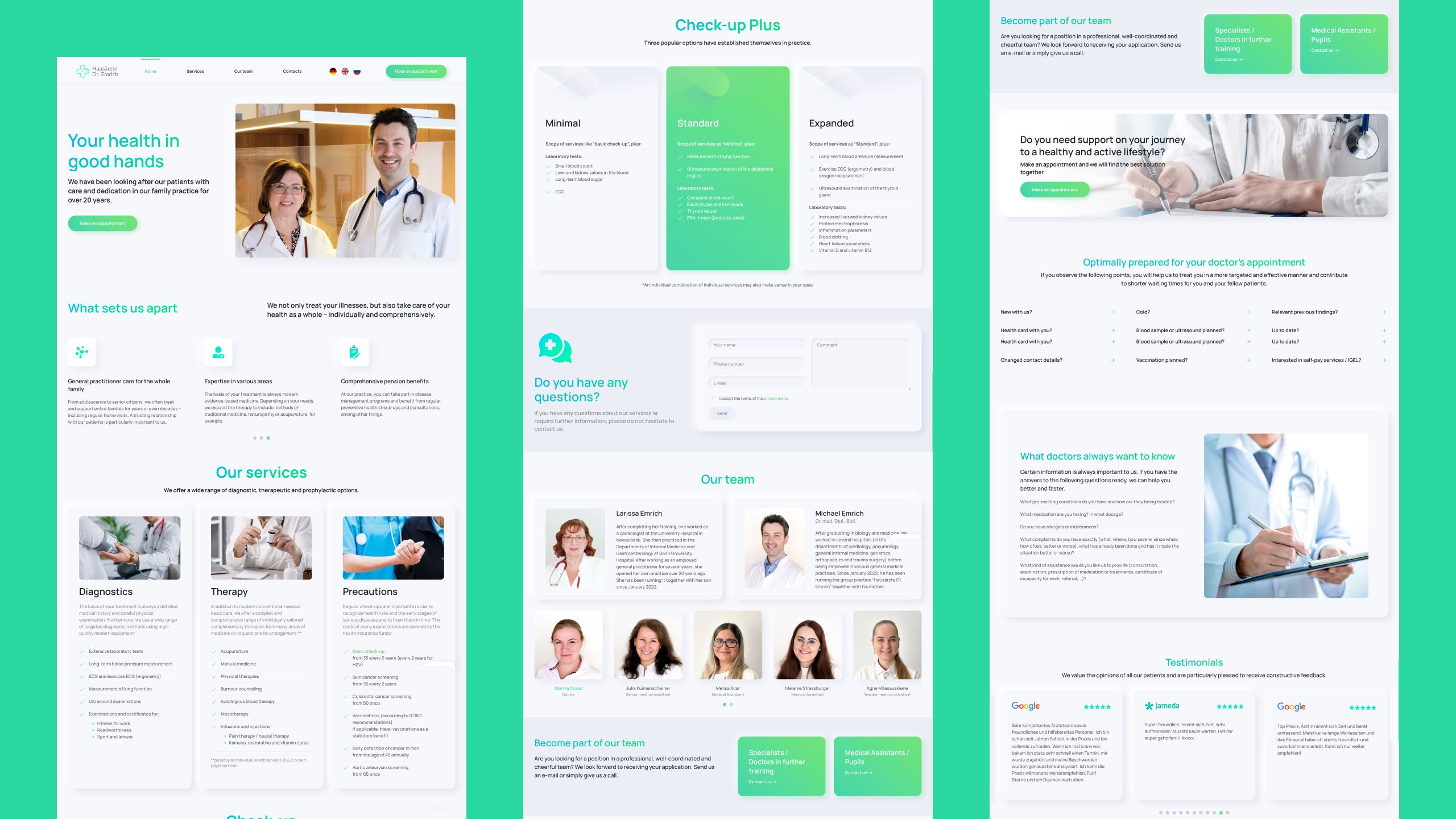 Auf Basis dieser Erkenntnisse erstellten wir eine Content-Strategie und Sitemap, legten Kernbotschaften pro Seite fest. Storytelling – fachliche Qualifikation gepaart mit familiärer Note – baute einen emotionalen Bezug auf, der Vertrauen schafft, noch bevor der Patient anruft.