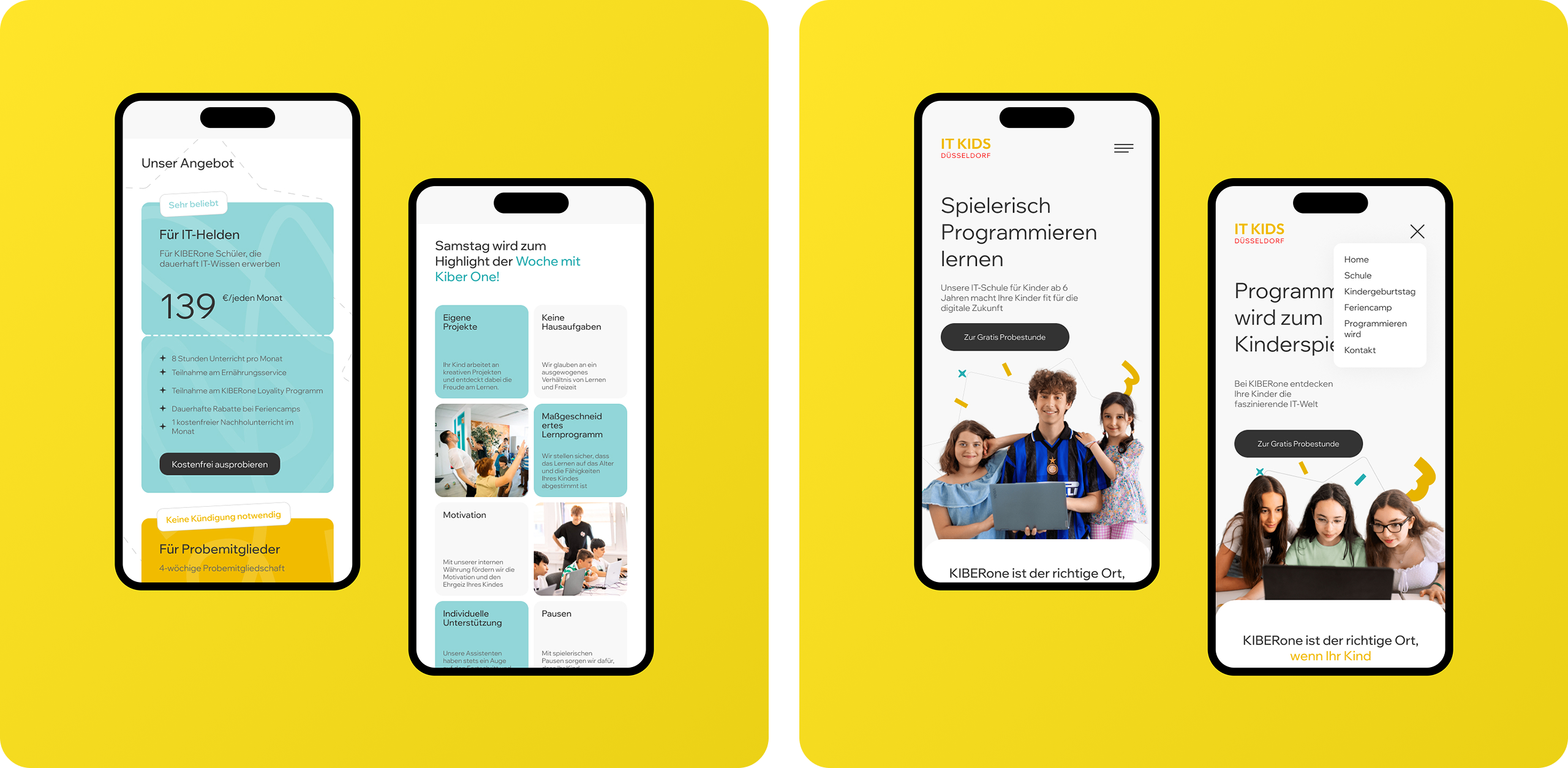 Der Release verlief ohne Downtime: erste Leads am Launch-Tag, Conversion der „Probestunden“-Seite bei 5,1 % in Woche 1. Das Ergebnis: eine Online-Bühne, die Kinder zu IT-Helden inspiriert und Eltern keinen Klick verlieren lässt.