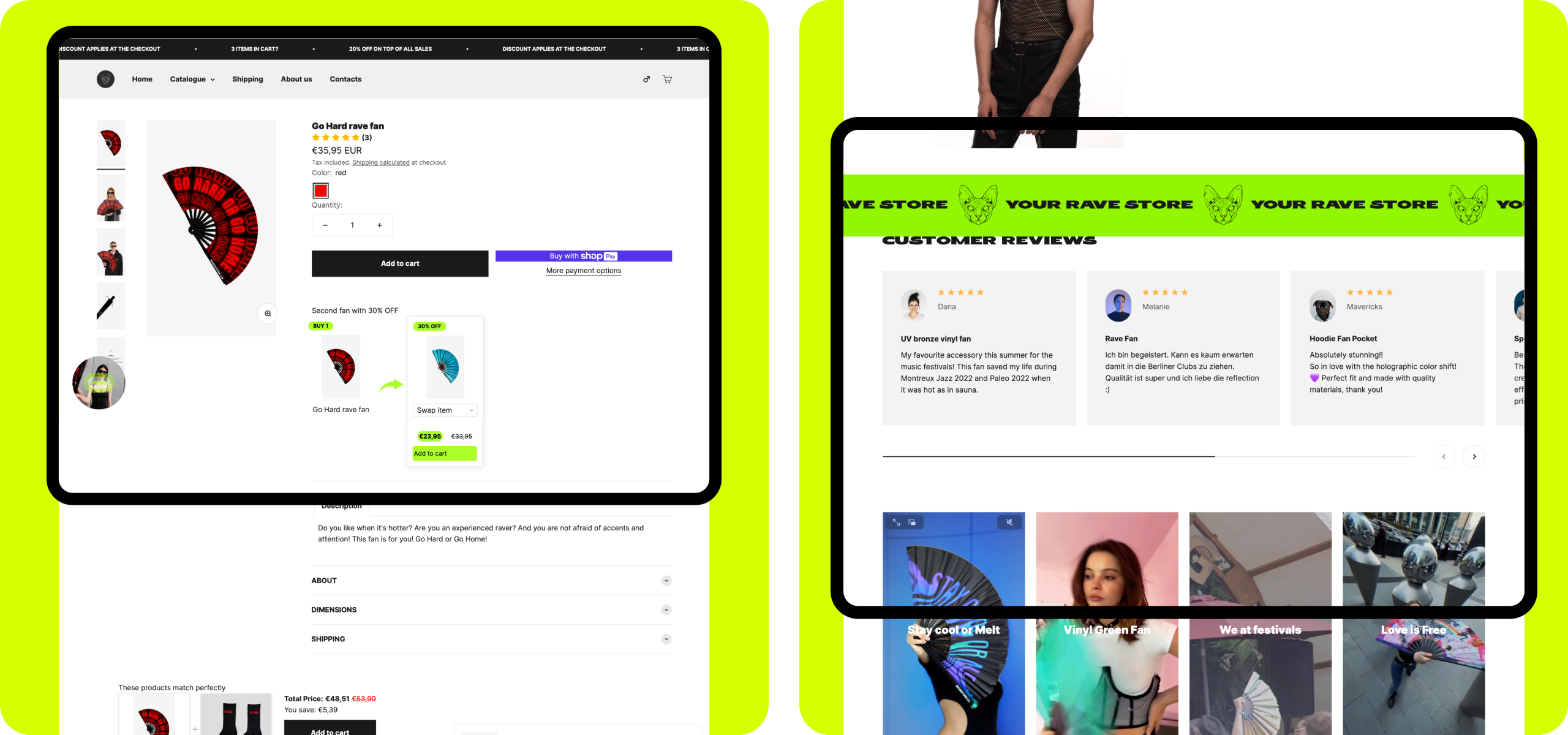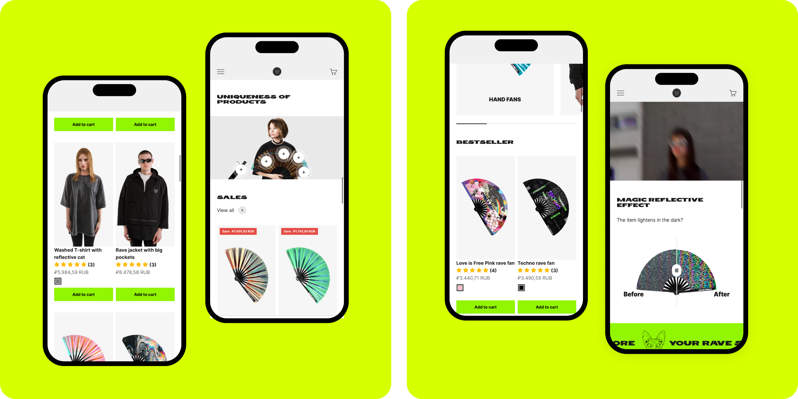 Eine Rave-Mode-Marke mit Sitz in Zürich, gegründet und betrieben von Enthusiasten, die die Ästhetik von Musikfestivals und Raves lieben. Angefangen hat es mit der Produktion von einzigartigen Handfächern für Raver, und nun geht es weiter mit der Gründung des ersten Rave Stores in der Schweiz, der hochwertige Kleidung für Handfächer produziert. Ravestore vereint frei denkende Menschen rund um elektronische Musik. Wir glauben, dass elektronische Musik Tausende von frei denkenden Menschen vereint, die bereit sind, sich durch Kleidung, Tanz und Accessoires auszudrücken und damit die Zugehörigkeit zu einer Ära zu zeigen.