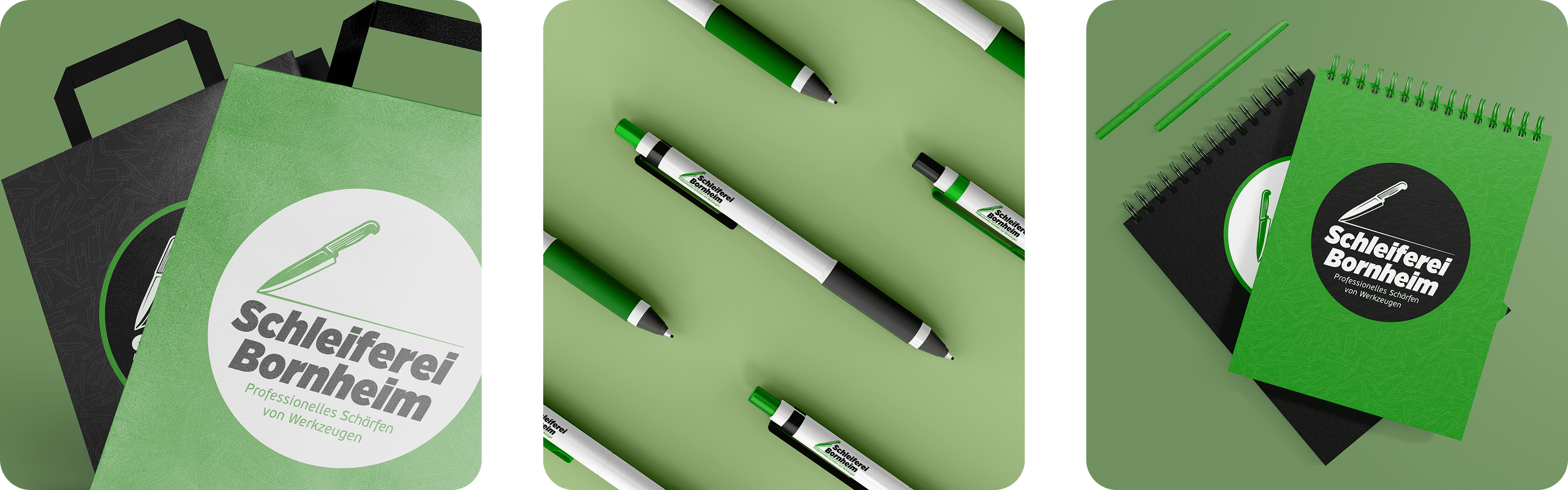 Unser Team war an allen Aspekten des Brandings und Marketings beteiligt, um der Schleiferei Bornheim eine einzigartige Identität zu verleihen und sie von der Konkurrenz abzuheben.