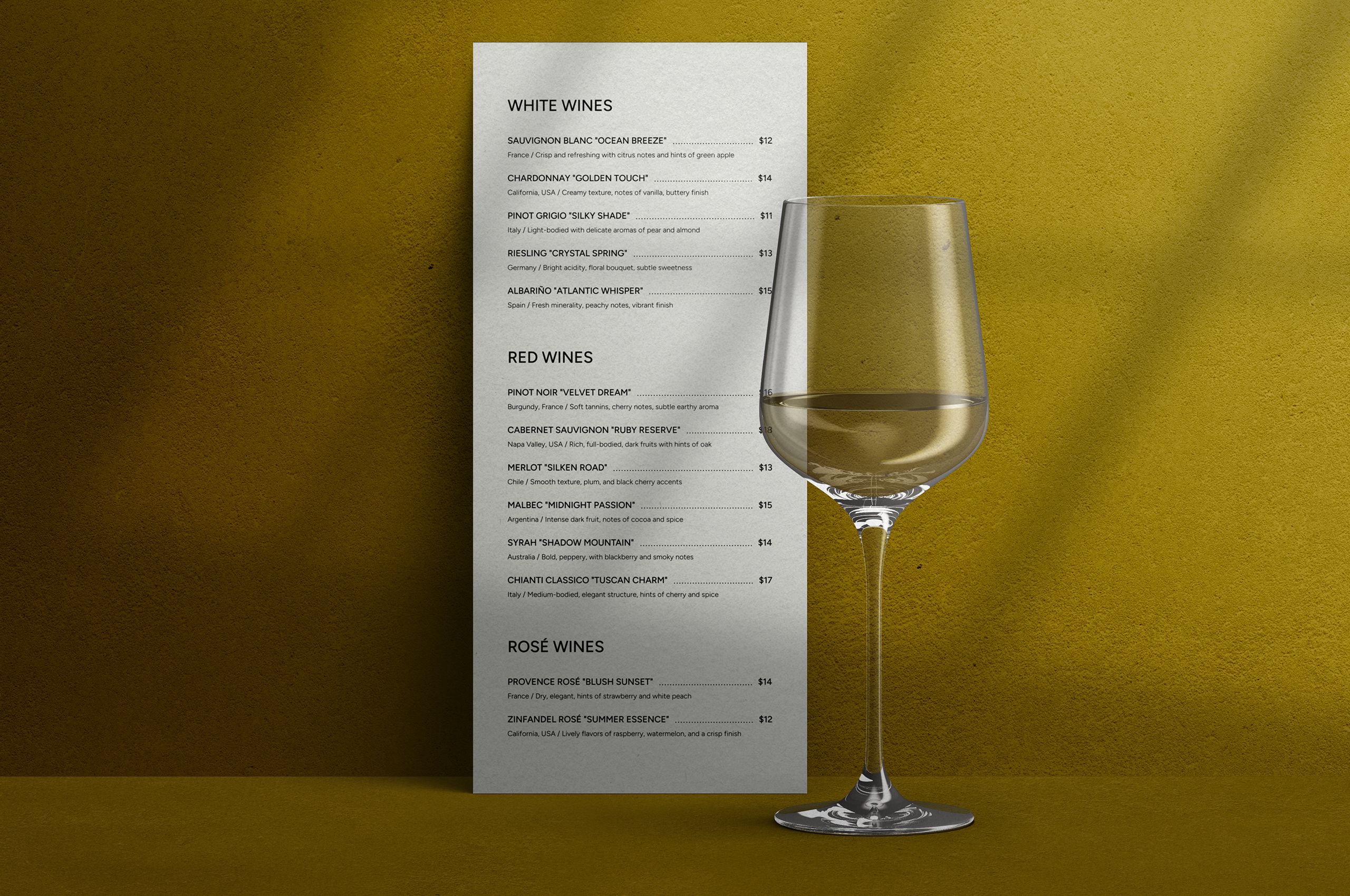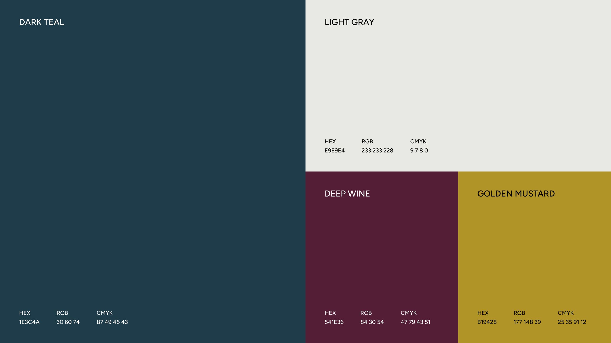 Die Farbpalette vereint tiefes Weinrot (#541E36), warmes Senfgelb und maritimes Dunkelblau – Anklänge an Eichenfässer und stimmungsvolle Tastings.