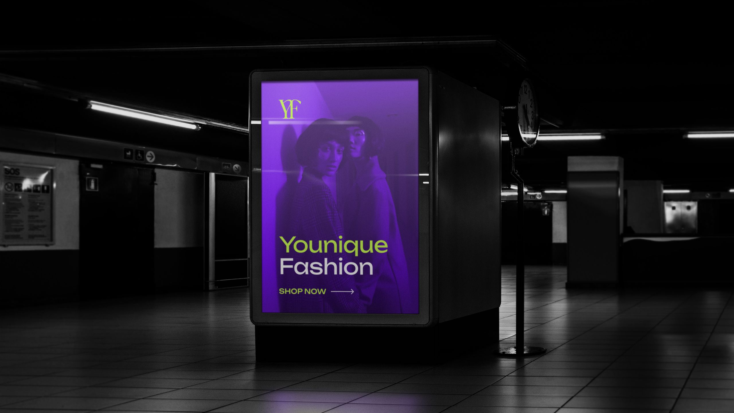 Die Aufgabe: Maximale Individualität in einer Monogramm-Marke. Wir entwickelten ein kontrastreiches YF mit feinen Serifen, perfekt lesbar bis 24 px. In Figma testeten wir 12 Szenarien – vom Smartphone bis zum City-Light-Poster.